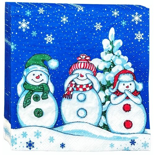 АртБукет Салфетки бумажные "Art Bouquet" Мудрые снеговики, 3 слоя,33x33, 20 листов