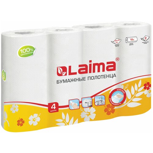 Полотенца бумажные бытовые, спайка 4 шт., 2-х слойные, (4×18 м), NoName/NoName, 22×23 см, белые, 128725