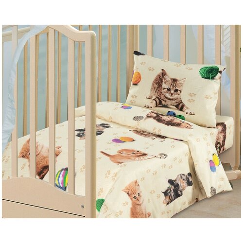 Детское постельное белье, Ясельный, Усатый-полосатый, Котята, АртПостель, 100% хлопок (Бязь), наволочка 60*40