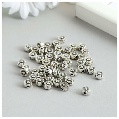 Бусина для творчества металл Микро цветочек серебро 0,5х0,5х0,3 см