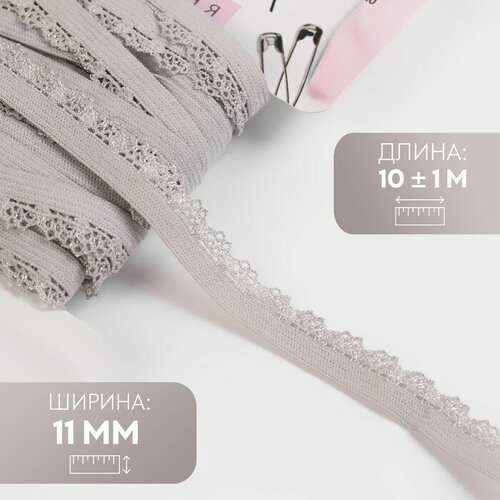 Резинка ажурная, 11 мм, 10 ± 1 м, цвет серый