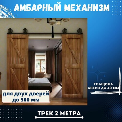 Амбарный механизм для раздвижных дверей лофт для двери до 1300 мм. Трек 2.6 метра.