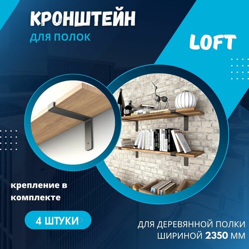 Держатель полок стальной LOFT в комплекте с креплением. 4 шт. Цвет черный.