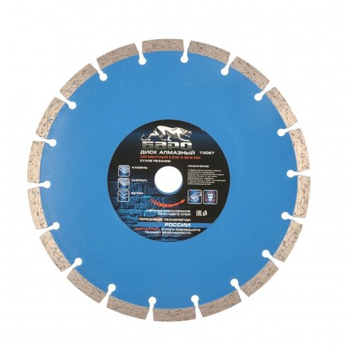 Диск алмазный, сегментный 230 х 22,2 мм, сухая резка, Барс, 73067