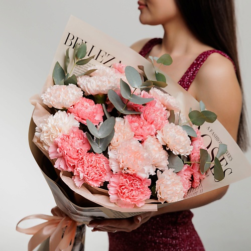 Букет живых цветов БУКЕТНАЯ ЛАВКА 25 Диантусов с эвкалиптом