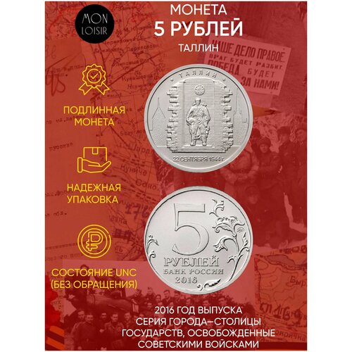 Памятная монета 5 рублей Таллин. Освобожденные города-столицы Европы. ММД. Россия, 2016 г. в. UNC