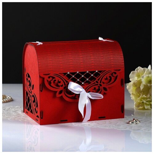 Семейный банк "Ажурный", со стразами, красно-белый, 23,5х17х20 см