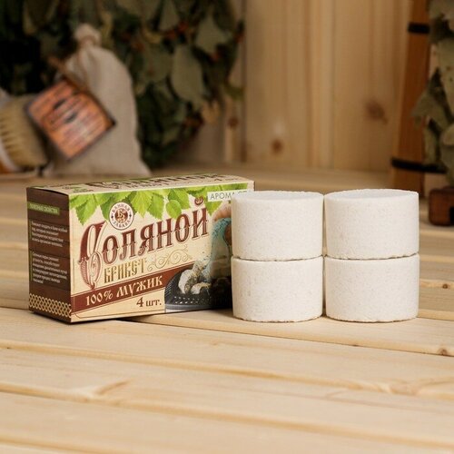 Банная забава Соляной брикет для бани Баня - место для души, 4 шт. с ароматом мяты