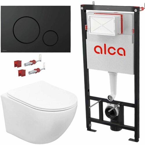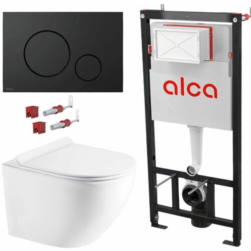 Готовый набор инсталляция для унитаза Alcaplast 3 в 1 AM101/1120 с чёрной панелью смыва+унитаз подвесной Zandini Garda Z19-05P
