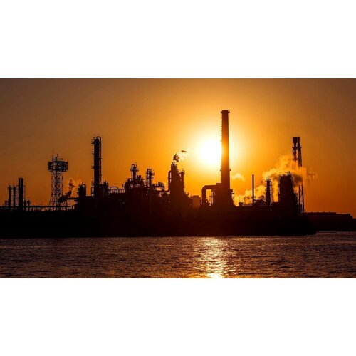 Картина на холсте 60x110 LinxOne "Закат силуэт завод пейзаж" интерьер для дома / декор на стену / дизайн