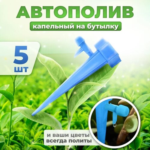 Автополив для комнатных растений Насадка на бутылку для полива, дождеватель синий 13.5см 1шт