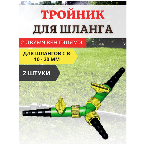 Благодатное земледелие Тройник для шланга d 10-20 мм с двумя вентилями, 2 шт