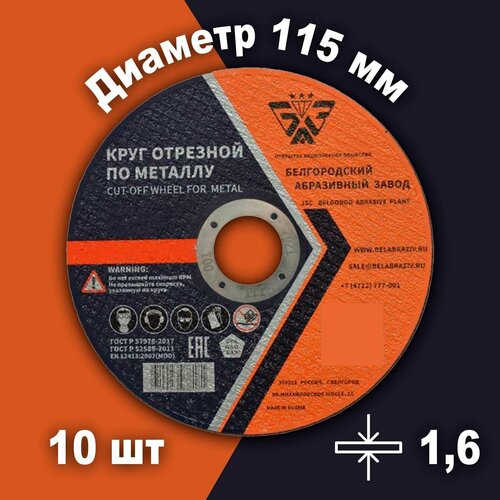 Круг отрезной по металлу Белгородский абразивный завод 115х1,6х22,23мм металл + нерж. сталь, 10шт