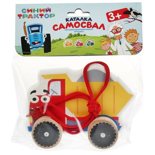 Каталка Синий трактор самосвал 12 см. Буратино игрушки из дерева KCT02