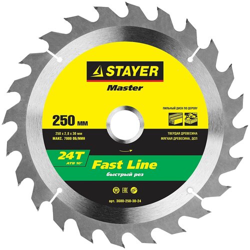 STAYER Fast Line 250 x 30мм 24Т, диск пильный по дереву, быстрый рез, 3680-250-30-24
