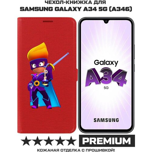 Чехол-книжка Krutoff Eco Book для Samsung Galaxy A34 5G (A346) Brawl Stars-Амбер де Ла Вега (красный)