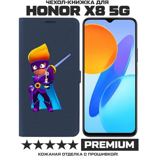 Чехол-книжка Krutoff Eco Book для Honor X8 5G Brawl Stars-Амбер де Ла Вега (синий)