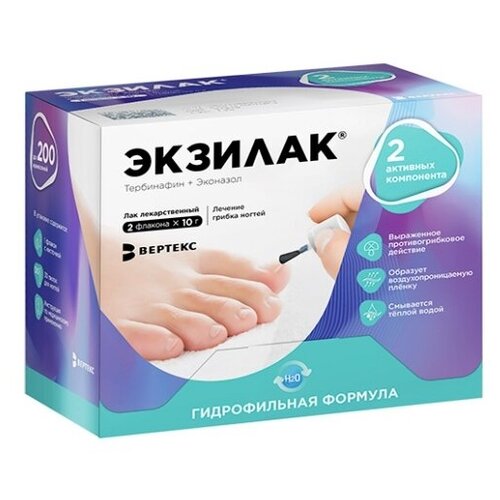 Экзилак лак д/ногтей лекарств. 4%+3% 10г №2 фл.