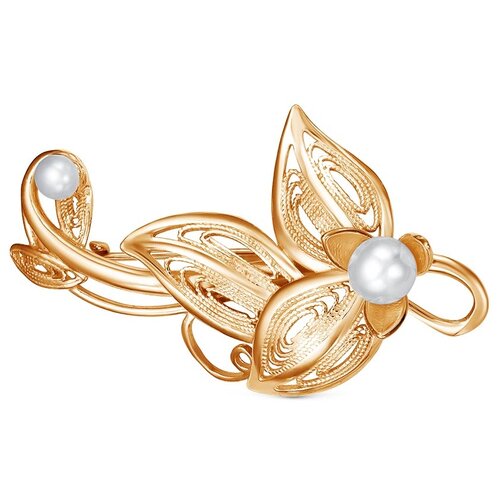 Серебряная брошь с жемчугом и фианитами Красная Пресня Б13310319Д