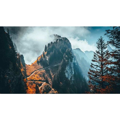 Картина на холсте 50x70 LinxOne "Гора, вершина, облака, деревья, природа, пейзаж" 112