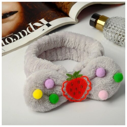 Повязка для волос "Фруктик" 18*5 см клубничка, серый