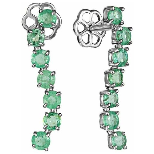 Серебряные серьги с натуральным изумрудом - коллекция Волна / покрытие Палладий - Лазурит-Онлайн (арт. 8744PD)