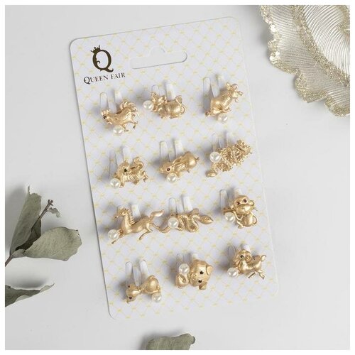 Брошь "Животные" восточный гороскоп, форма микс, цветные в матовом золоте (неделимая фас.12шт, цена за шт)