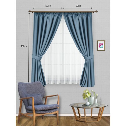 Комплект штор ВсеТканиТут "Блэкаут Bacio" 300х250 голубой