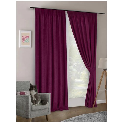 Комплект штор ВсеТканиТут "Канвас Bacio" на люверсах 300x260 2шт. Бордовый