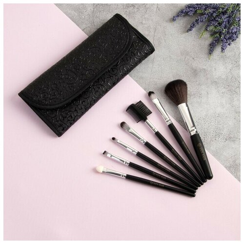Набор кистей для макияжа «Вензель», 7 предметов, чехол на кнопке, цвет чёрный