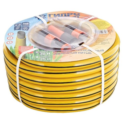 Шланг поливочный Д=1/2 (25м) армированный, 3-х слойный Гидроагрегат желтый с черной полосой