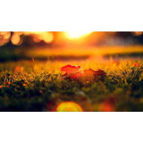 Постер на экокоже 60x100 LinxOne "Листик, жухлый, трава, газон" интерьер для дома / декор на стену / дизайн