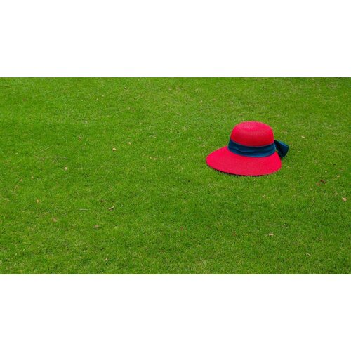 Картина на холсте 60x80 LinxOne "Шляпа, трава, газон, зеленый, красный" интерьер для дома / декор на стену / дизайн