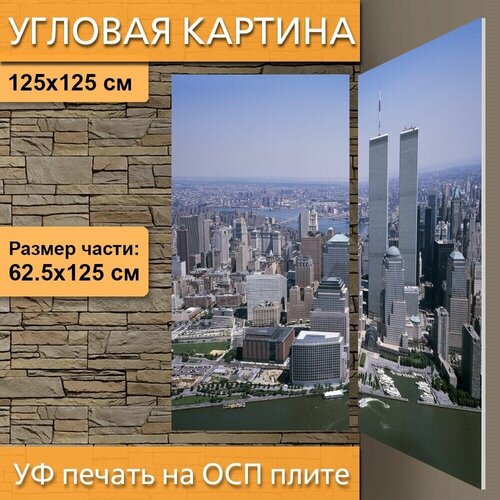 Угловая модульная картина "Всемирный торговый центр, wtc, нью йорк" для интерьера на ОСП плите, 125х125 см.