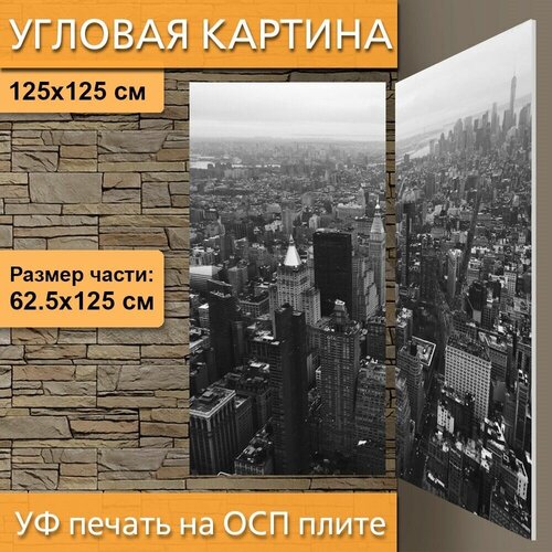 Угловая модульная картина "Ньюйорк, город, центр города" для интерьера на ОСП плите, 125х125 см.