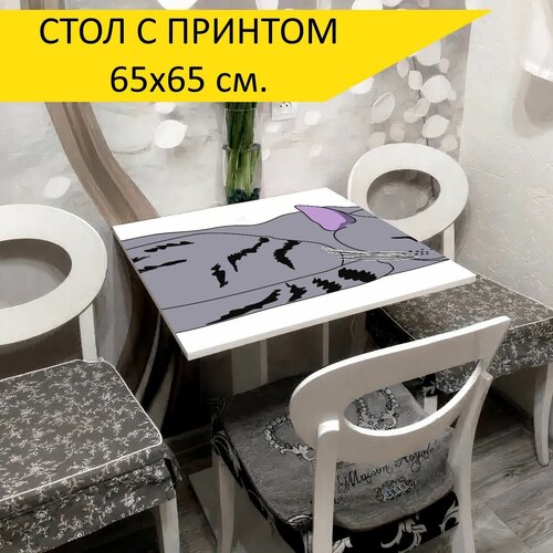 Стол "Животное, кошка, центр", 65x65 см. Кухонный, квадратный, с принтом.