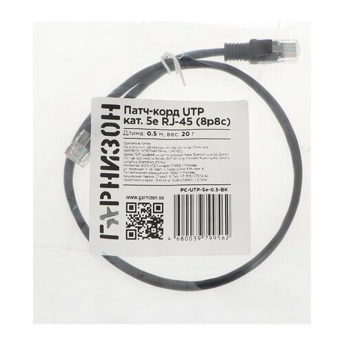 Патч-корд Гарнизон PC-UTP-5e-0.5-BK, UTP 5е кат., RJ-45(m)-RJ-45(m), 0.5м, черный