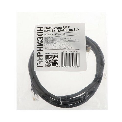 Патч-корд Гарнизон PC-UTP-5e-1.5-BK, UTP 5е кат., RJ-45(m)-RJ-45(m), 1.5 м, черный