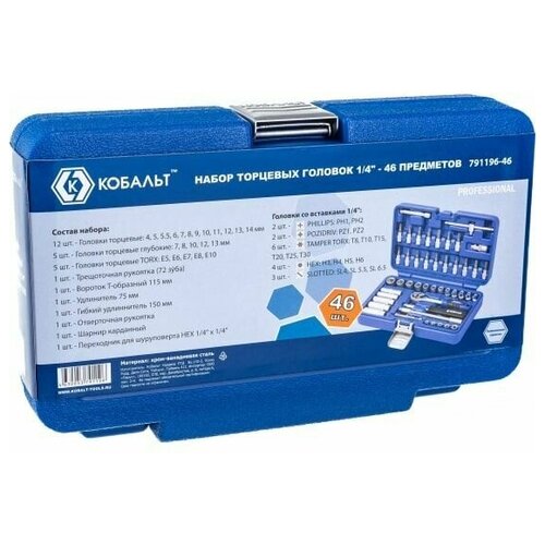 Набор инструментов 46пр 1/4 4-14мм 6-гран. пластик кейс