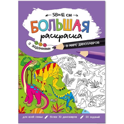 Большая раскраска 580*410 геодом В мире динозавров с заданиями