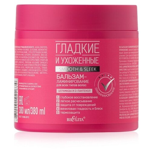 Бальзам-ламинирование для всех типов волос Гладкие и ухоженные 380мл