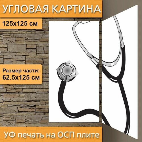 Угловая модульная картина "Стетоскоп, доктор, медицина" для интерьера на ОСП плите, 125х125 см.