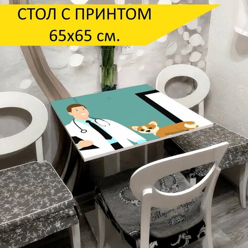 Стол "Ветеринар, доктор, собака", 65x65 см. Кухонный, квадратный, с принтом.