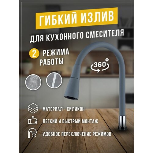 Гибкий силиконовый излив для смесителя с 2-мя режимами