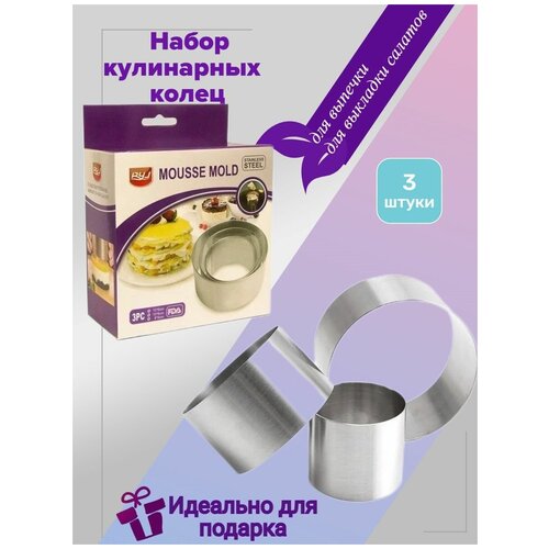 Форма для выпечки, салатов, десертов без дна набор 3 шт.