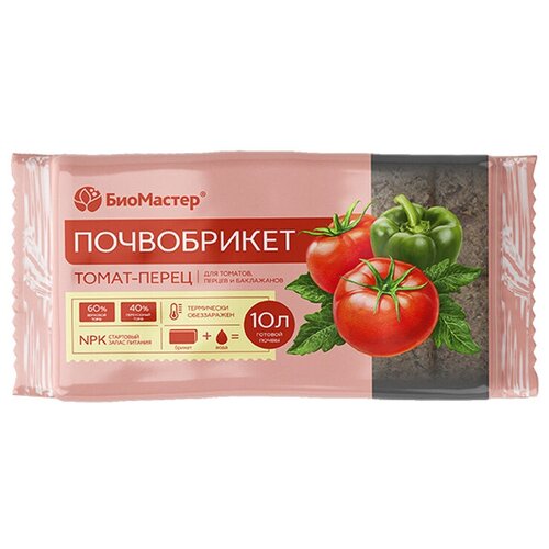 Почвобрикет Томат и Перец, Крепкая рассада, БиоМастер, 10 л, 4 шт.