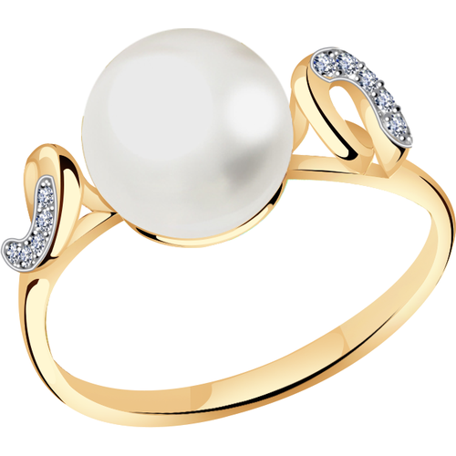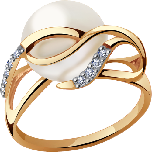 Золотое кольцо Жемчужное подворье 15510660.0.b. с фианитом и жемчугом