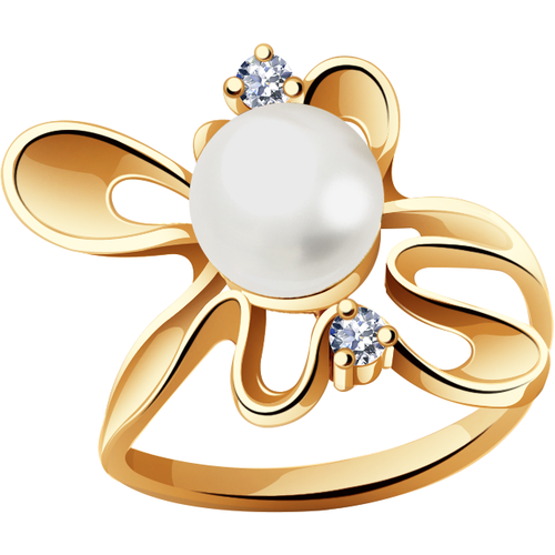 Золотое кольцо Жемчужное подворье 15510949.0.b. с фианитом и жемчугом