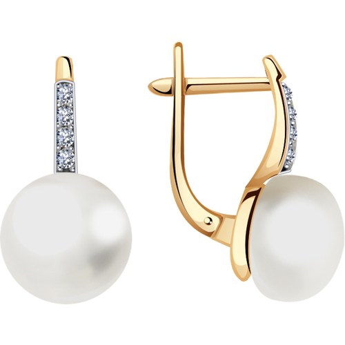Золотые серьги Жемчужное подворье 25510815.0.b.000 с фианитом и жемчугом