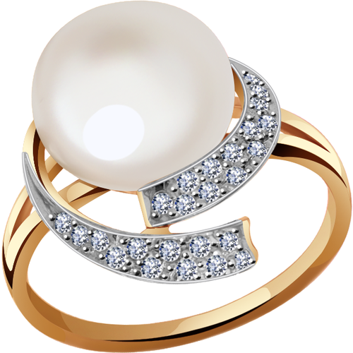 Золотое кольцо Жемчужное подворье 15510902.0.b. с фианитом и жемчугом